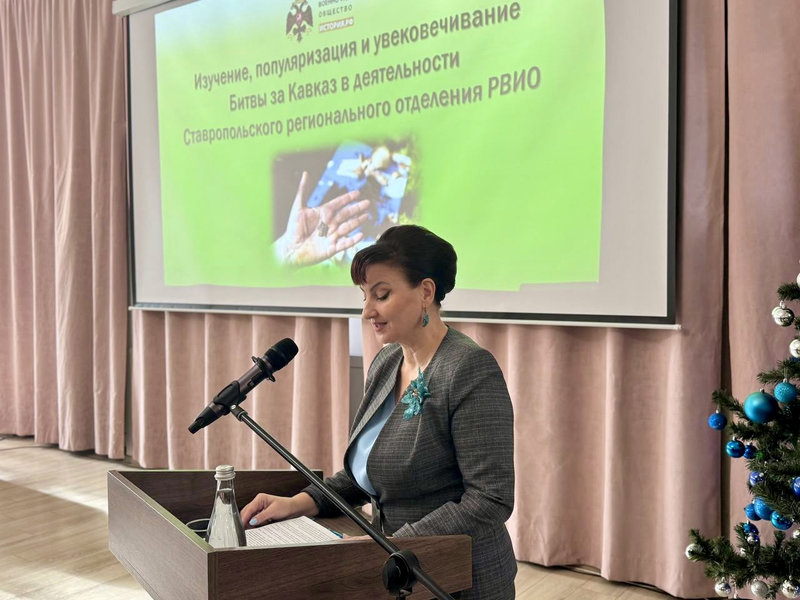 Подробно осветила деятельность Российского военно-исторического общества в Ставропольском крае по изучению, популяризации и увековечению памяти о Битве за Кавказ заведующий отделом военной истории и патриотической работы Ставропольского государственного историко-культурного и природно-ландшафтного музея-заповедника имени Г.Н. Прозрителева и Г.К. Праве, исполнительный директор Регионального отделения Российского военно-исторического общества в Ставропольском крае, кандидат исторических наук Галина Николаевна Каменева.