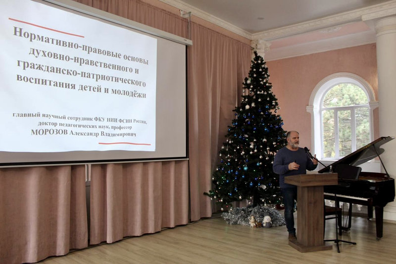 Нормативно-правовые основы духовно-нравственного и гражданско- патриотического воспитания детей и молодёжи стали темой доклада заведующего кафедрой социально-психологической безопасности личности НОУ ВО «Московский социально-педагогический институт», главного научного сотрудника ФКУ «Научно-исследовательский институт ФСИН России», доктора педагогических наук, профессора Александра Владимировича Морозова.