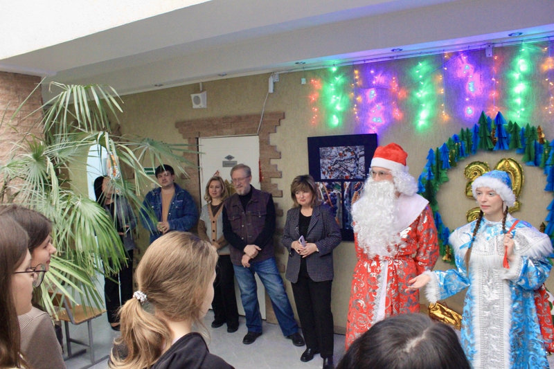 Программа открытия получилась насыщенной и праздничной. Гостей встречали сказочные персонажи Дед Мороз (М.К. Колисниченко, гр. ИК-21-о) и Снегурочка (Е.Н. Проскрякова, гр. ИК-21-о), которые для провели участников увлекательную викторину «Зима в русском искусстве». Кроме того, состоялось открытие специальной инсталляции «Новый год по-русски: Дымковская игрушка», созданной студентами группы ИК-24-о под руководством доцента кафедры В.К. Евченко.