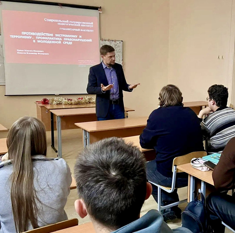 В Ставропольском государственном педагогическом институте с декабря 2025 по январь 2026 года прошел цикл профилактических бесед для студентов. Мероприятия были организованы деканом гуманитарного факультета Максимом Ивановичем Цапко и ВРИО заведующего кафедрой теории и методики истории и обществознания Владимиром Фёдоровичем Покасовым. Встречи состоялись на гуманитарном и психолого-педагогическом факультетах, а также на факультете дефектологии и естественно-научного образования.